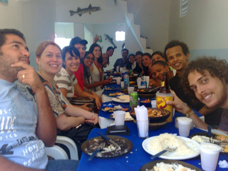 [caption id="attachment_1785" align="aligncenter" width="450" caption="A galera "batendo" aquela moqueca no Marujo (Pedra Furada)"]